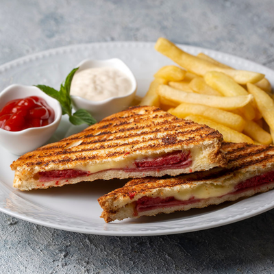 Patates Kızartması, Yeşillik Ve Soslar Eşliğinde