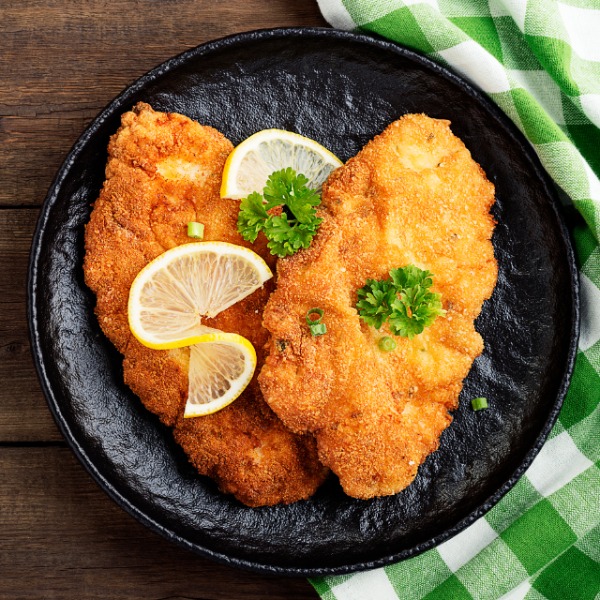 200gr Panelenmiş Tavuk, Patates Kızartması, Akdeniz Yeşillikleri